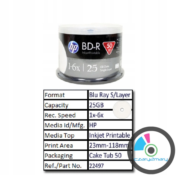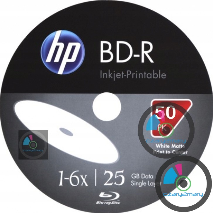 HP BD-R Printable 25GB x6 - biały matt - do pełnego nadruku w drukarkach atramentowych 10 sztuk .