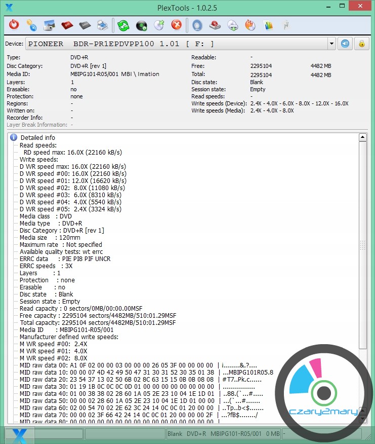Producent korporacja Imation\Memorex\TDK MID: MBIPG101R05 tłoczni Moser Baer Imation .