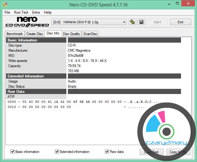 Producent-logo Memorex Music CD-R Audio - tłocznia CMC Magnetic DA : -ATIP-MID: 97m26s66f (identyfikator producenta)-klasa jakościowa A+ .