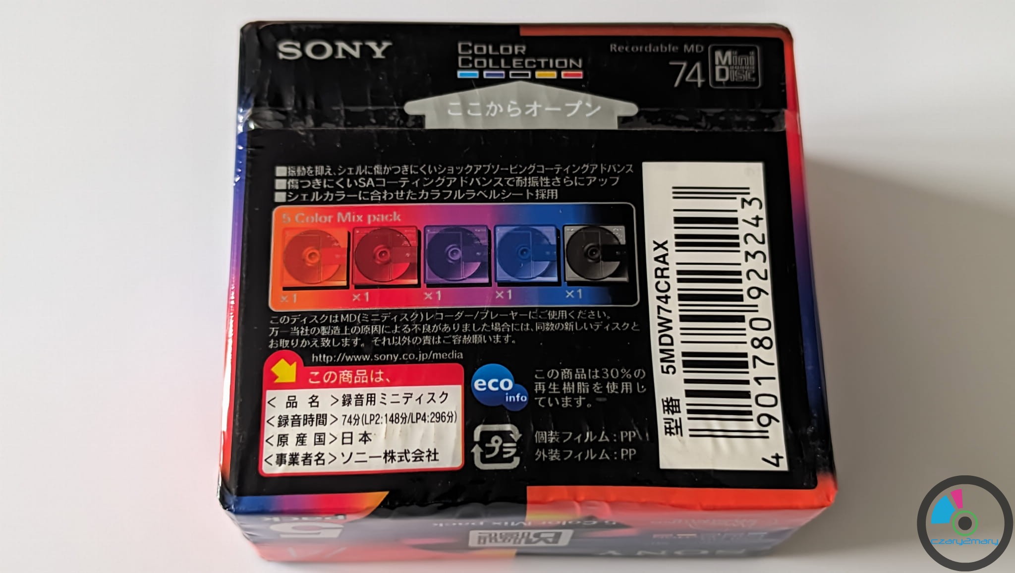 MiniDisc MD SONY Color MIx 74 Japan 5szt-5pack - fabrycznie zapakowany -folia - cena za -5pack