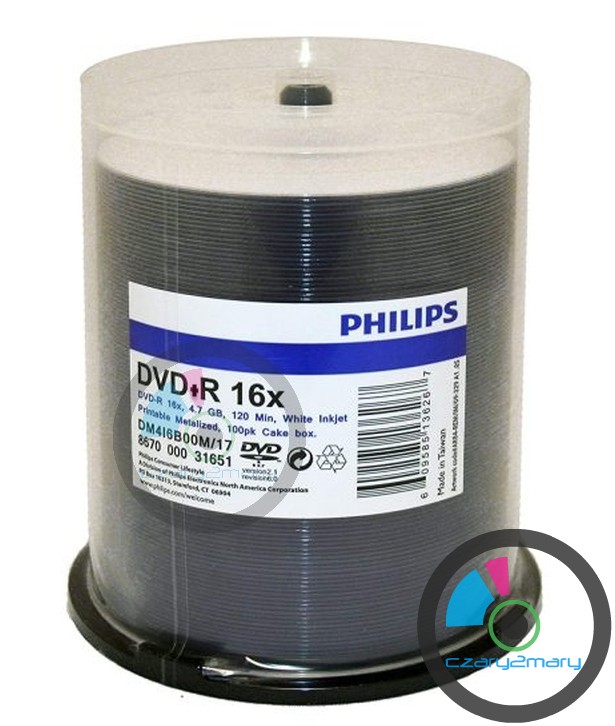 Philips DVD-R Duplication Grade White Inkjet Hub Printable 16x Printable MID: CMCMAGM01 dobry jakościowo nośnik do DVD-Video\archiwizacja-oraz nawigacji samochodowych \ umożliwia ustawienie księgi\booktype DVD-ROM .Do pełnego nadruku w atramentowych drukarkach - Extra Fine Matt
