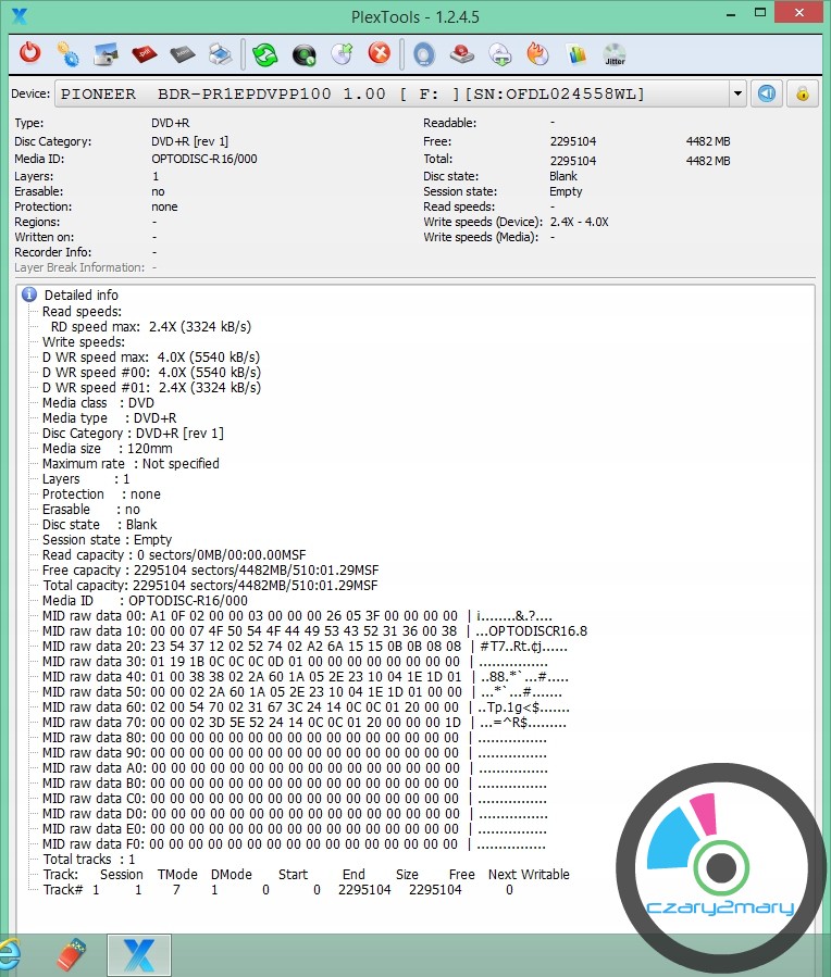 Plextor Plex DVD+R Logo MID: OPTODISCR16 - dobra jakościowo płyta do DVD-Video \ archiwizacja-oraz nawigacji samochodowych- możliwa zmiana \ ustawienie księgi booktype na DVD-ROM