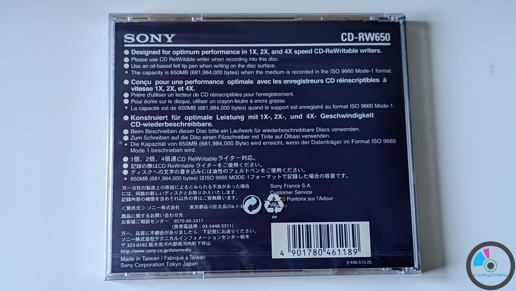 Sony CD-RW 74min /650MB 1x2x4x Multi Speed Japan 1szt