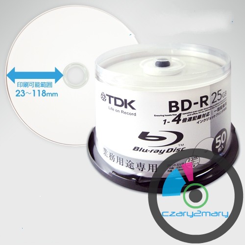 TDK BD-R Printable 25GB - biały matt - do pełnego nadruku w drukarkach atramentowych 5sztuk koperta CD .