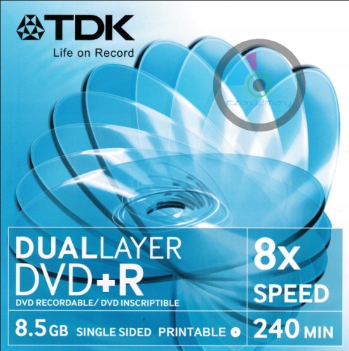 TDK DVD+DL 8.5GB Printable dwuwarstwowy nośnik przeznaczony do pełnego nadruku w drukarkach atramentowych ..Oficjalny wsparcie dla overburning 8.7GB (8334MB=8.14GB)