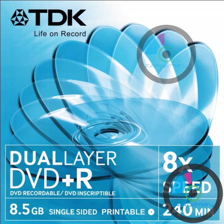 *Pojemność : - 8.5GB / 240Min / *strategie zapisu :x2,4 ,x4,x6,x8 / MID : RITEKS04 / Powierzchnia : -Printable - \ Producent -TDK Opakowanie :pojedyncze koperta CD 1szt . Wersja Printable do pełnego nadruku w drukarkach atramentowych