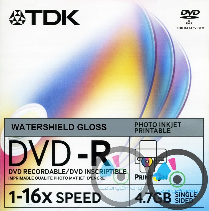 TDK DVD-R Printable Watershield Gloss 1szt.- dobra jakościowo płyta do DVD-Video \ archiwizacja-oraz nawigacji samochodowych z profesjonalnej edycji do wodoodpornego nadruku.