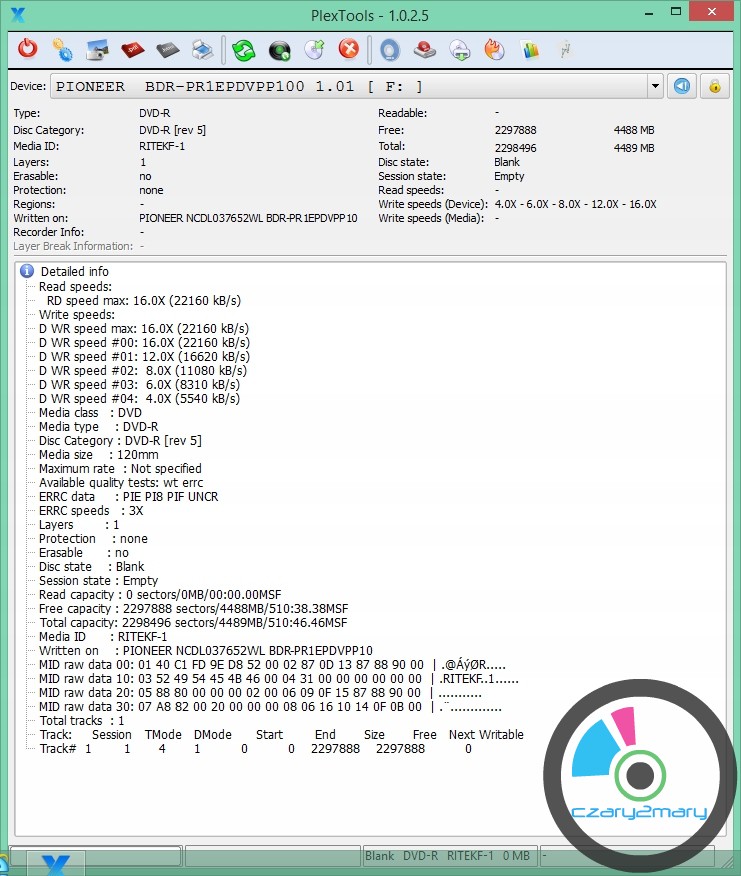 Producent logo TDK DVD-R Printable - Watershield Gloss tłocznia Ritek MID: RitekF1 (identyfikator producenta)