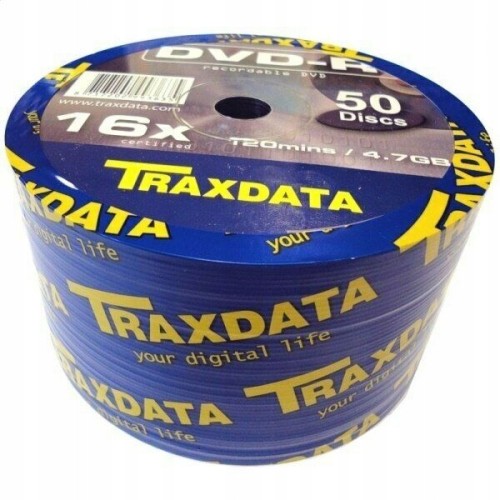 Traxdata DVD+R x16 logo cake box 50 sztuk . MID: RitekF16 - dobra jakościowo płyta do DVD-Video \ archiwizacja-oraz nawigacji samochodowych umożliwia ustawienie księgi \ booktype DVD-ROM .