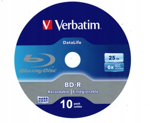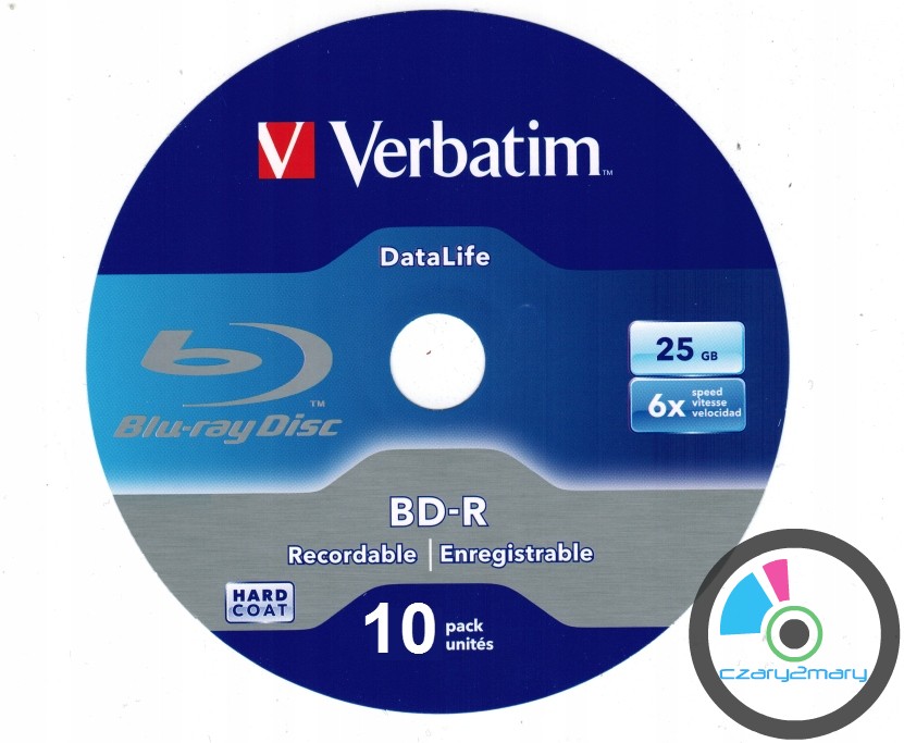 **Pojemność: 25GB, jednowarstwowy-jednokrotny zapis ,warstwa ochronna HardCoat ,