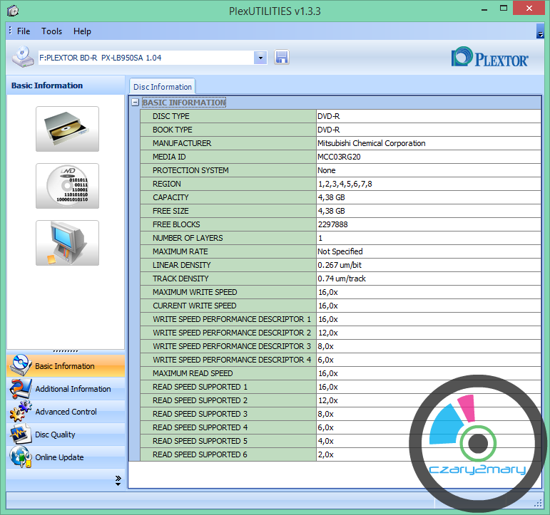 Verbatim DVD-R Lightscribe 1szt. MID: MCC03RG20 tłocznia MKM Verbatim - Nawigacje , archiwizacja DVD-Video .Bardzo dobra jakościowo płyta do DVD-Video archiwizacja- .Nośnik został przetestowany w odczycie i zapisie na profesjonalnym napędzie Teac DV-W5000S JVC Archival Drive (~3000$) i Pioneer BDR-PR1 oraz kilku losowych innych napędach. Zdjęcia i screen z programów diagnostycznych przedstawiają oferowany nośnik .