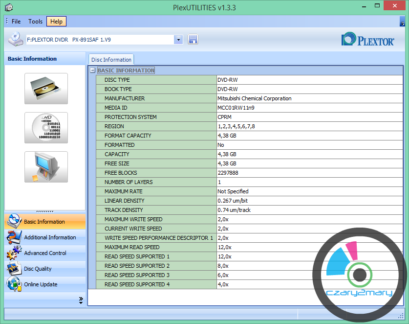 Jedna z ostatnich wyprodukowanych DVD-RW w tłoczni MITSUBISHI KAGAKU MEDIA .Płyty dostępne w wersji Printable ..